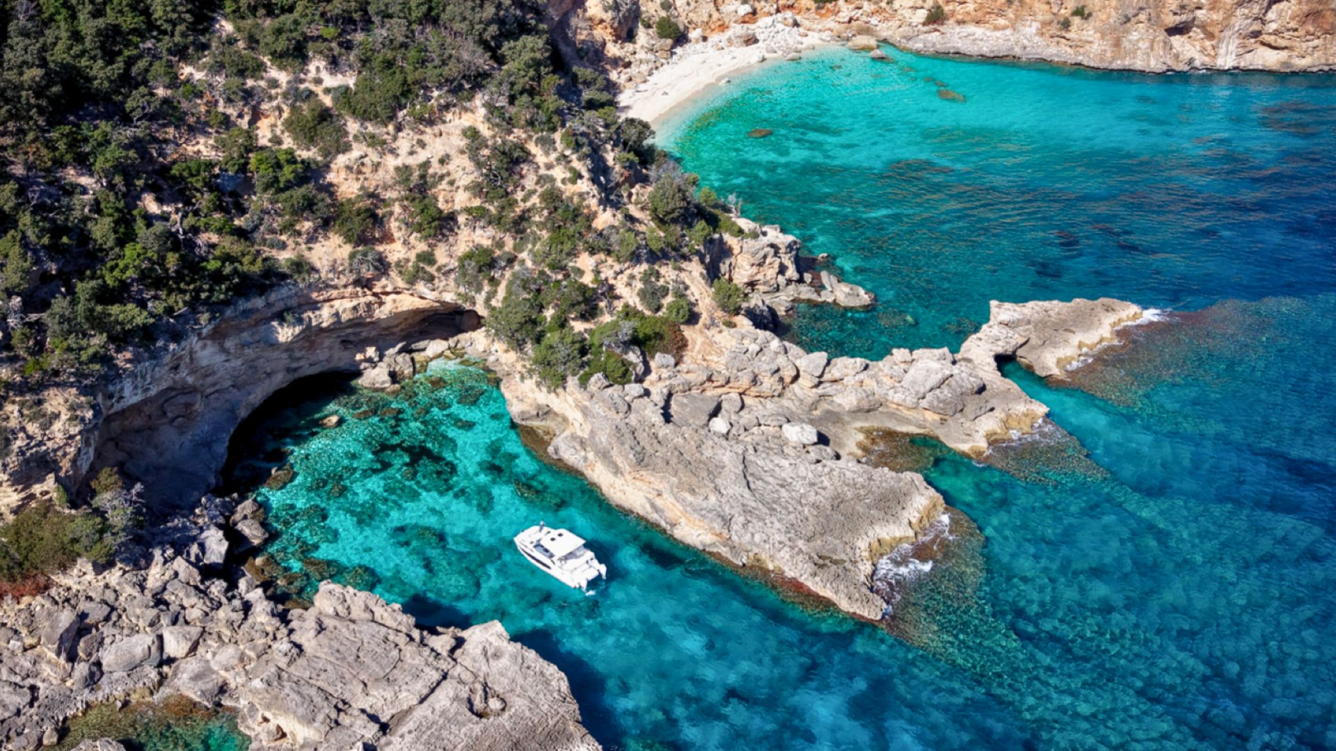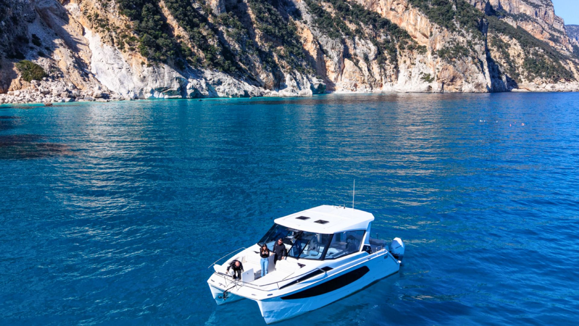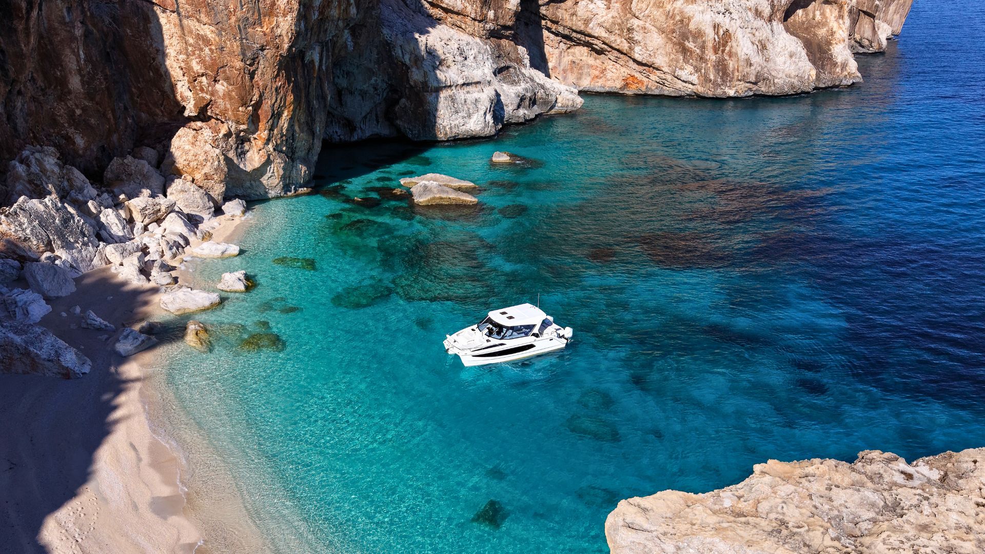 Sono previste due soste in spiaggia a Cala Luna e Cala Mariolu o Cala dei Gabbiani e 2-3 soste bagno alle Piscine di Venere, Cala Golorizté o Cala delle Sorgenti.
