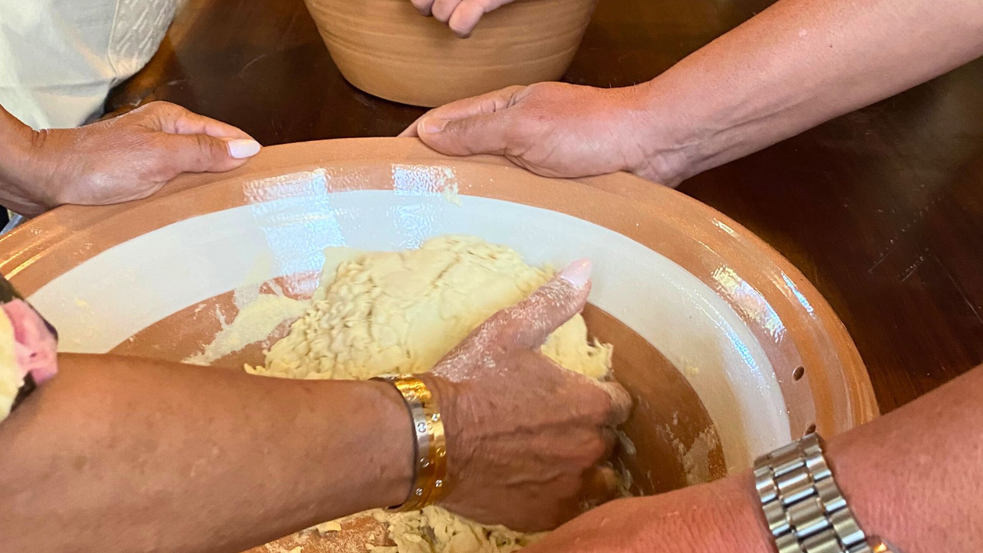 Ensemble, nous allons pétrir le pain selon des gestes anciens, transmis de génération en génération. Vous sentirez la pâte prendre vie sous vos doigts, vous la laisserez reposer puis vous l'étalerez très finement avant une double cuisson au four à bois, comme cela se faisait par le passé. L'expérience se poursuivra dans la cave suggestive, où vous découvrirez certains des secrets de la longévité, notamment le rôle de Cannonau, un célèbre vin sarde symbole de tradition et d'identité. Enfin, une délicieuse dégustation finale vous attendra avec une sélection de produits locaux typiques, notamment la soupe traditionnelle galluraise et du pain carasau fraîchement sorti du four.